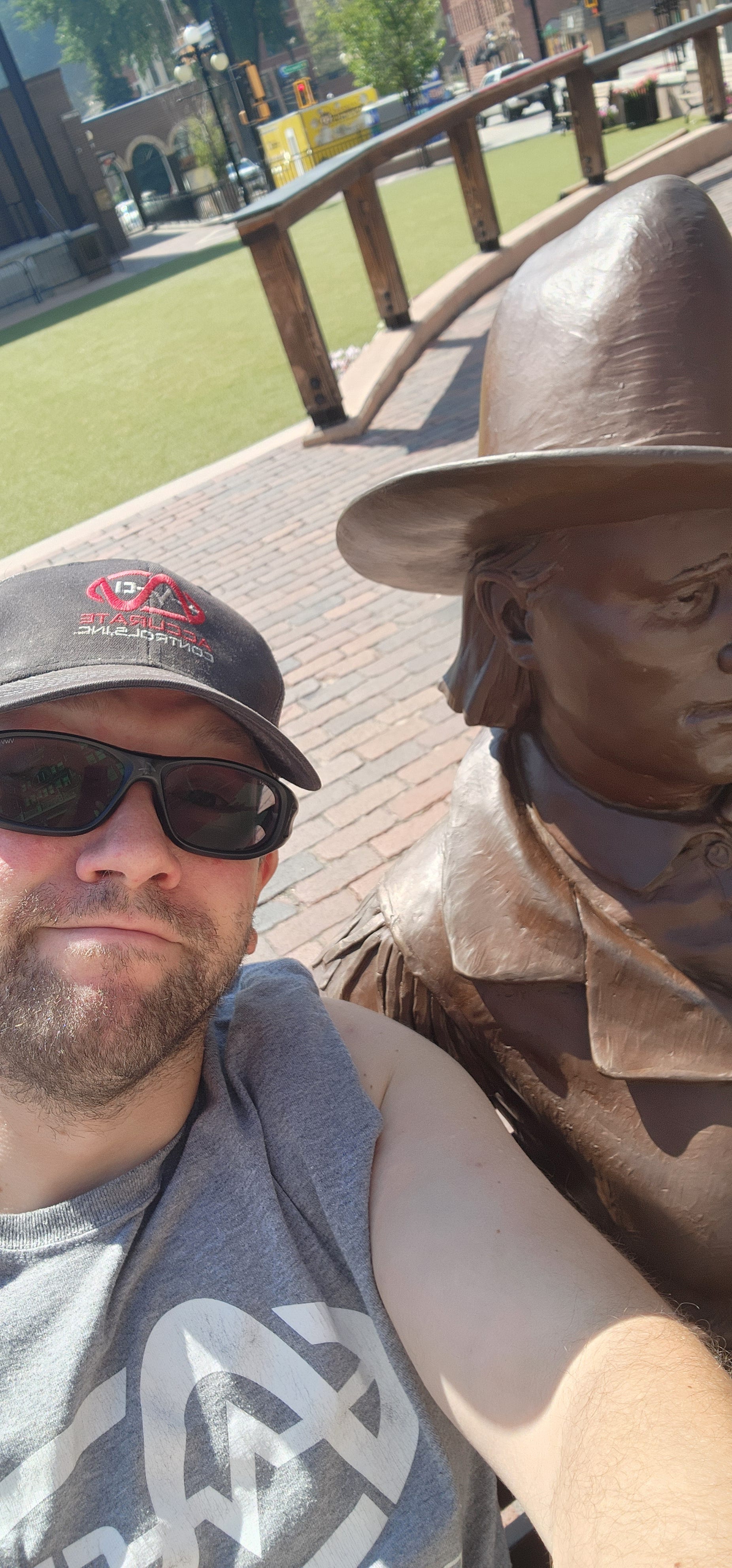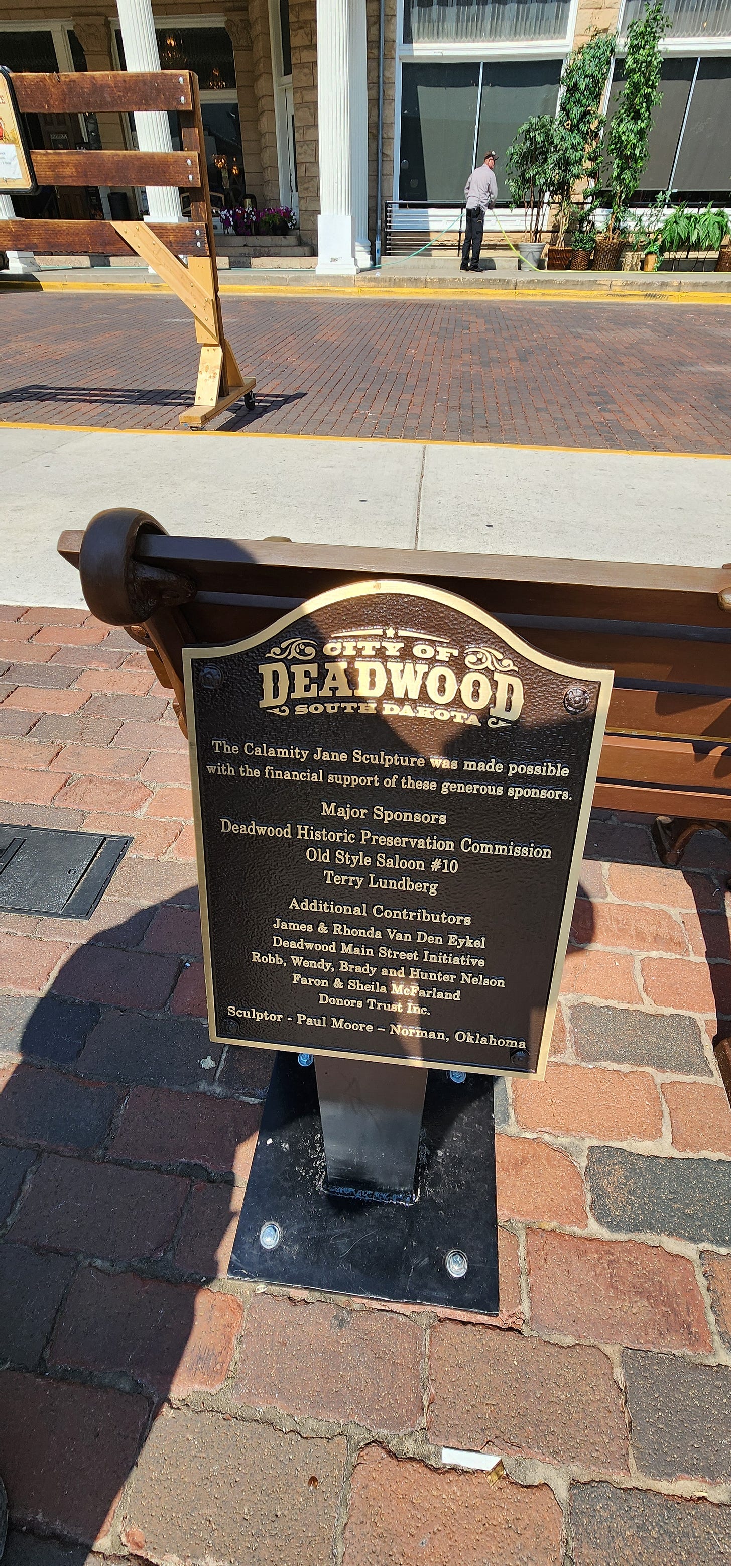 The plaque at the base says the sculptor was Paul Moore from Norman, Oklahoma. The Deadwood Historic Preservation Commission paid for it, with major sponsorship from Old Style Saloon #10. That’s the same saloon where Hickok was playing cards when he died. They’re funding statues of the people who drank there. I respect the hustle.